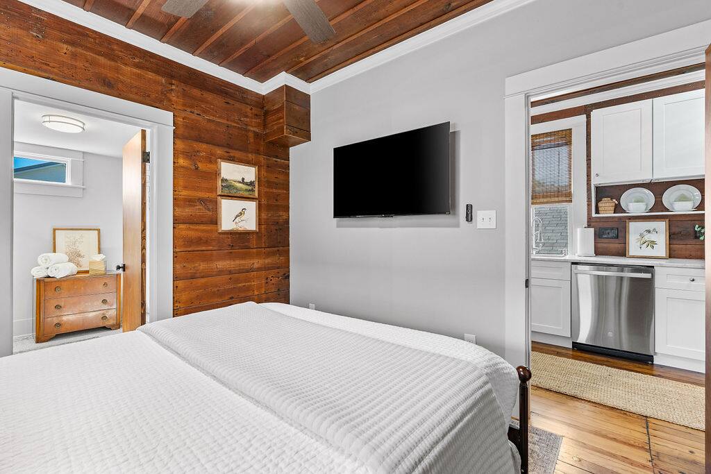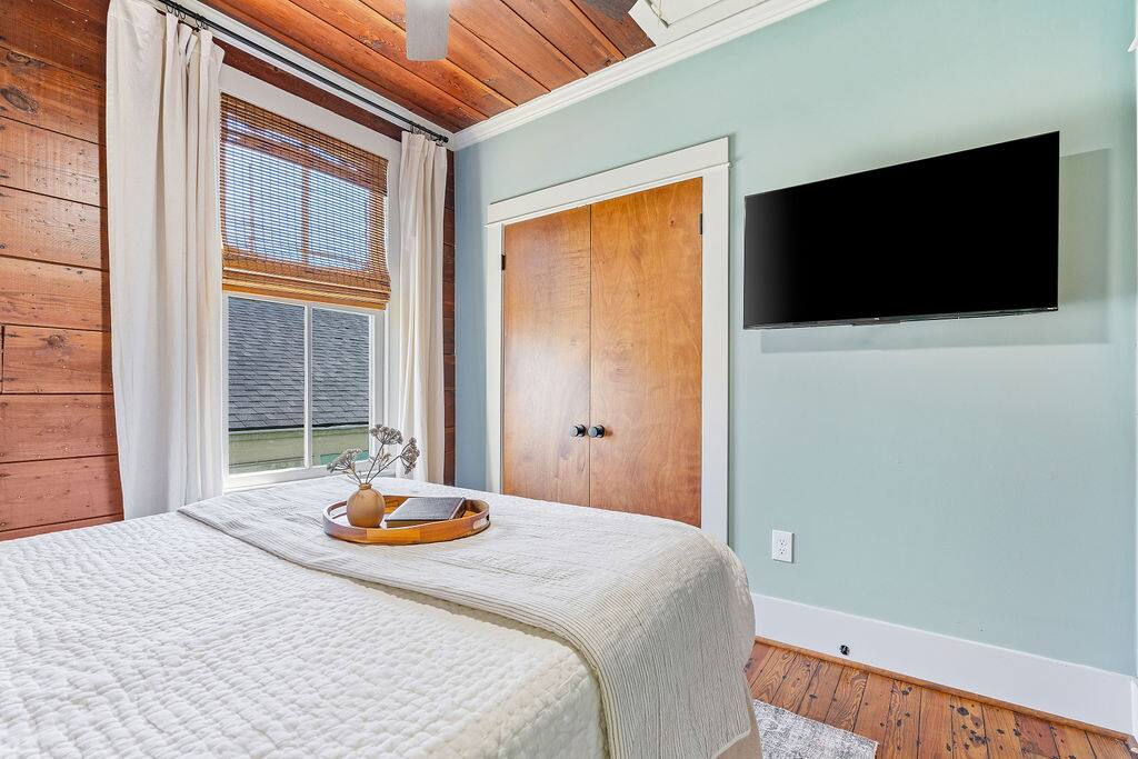 CLOSE TO BEACHES Whether you walk or drive, you'll be super close to Galveston's beaches. Just a 10-minute walk or 2-minute drive to the Seawall. CENTRAL LOCATION This home is located in midtown Galveston, close to loads of restaurants, shops, beaches, and period architecture. It's in an eclectic neighborhood with a mix of restored homes as well as older homes in need of restoration. HISTORIC CHARM People love Galveston's historic homes, and this one has been renovated to bring back its original character. You'll love the shiplap walls and ceilings, original hardwood floors and windows — all mixed with curated design elements. BEDROOMS Two bedrooms full of character and cozy bedding that will make you want to stay snuggled in bed. —Bedroom 1: Primary bedroom with queen bed and ensuite bathroom —Bedroom 2: Queen bed (with Pack n Play in closet) —Living Room: Queen sofa bed with memory foam mattress TVs Enjoy three Roku Smart TVs in the living room and both bedrooms. Log in to your favorite streaming services and be automatically logged out when you leave. GOLF CART RENTAL Beachin' Rides offers an exclusive discount for guests who stay at this property! (Discount is not available during holiday weeks or during other local special events.) Contact us for details.