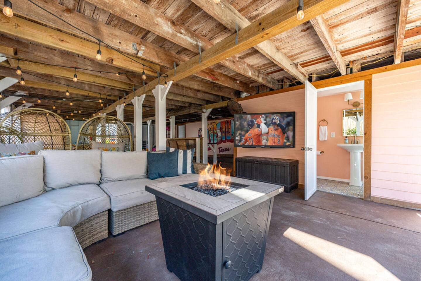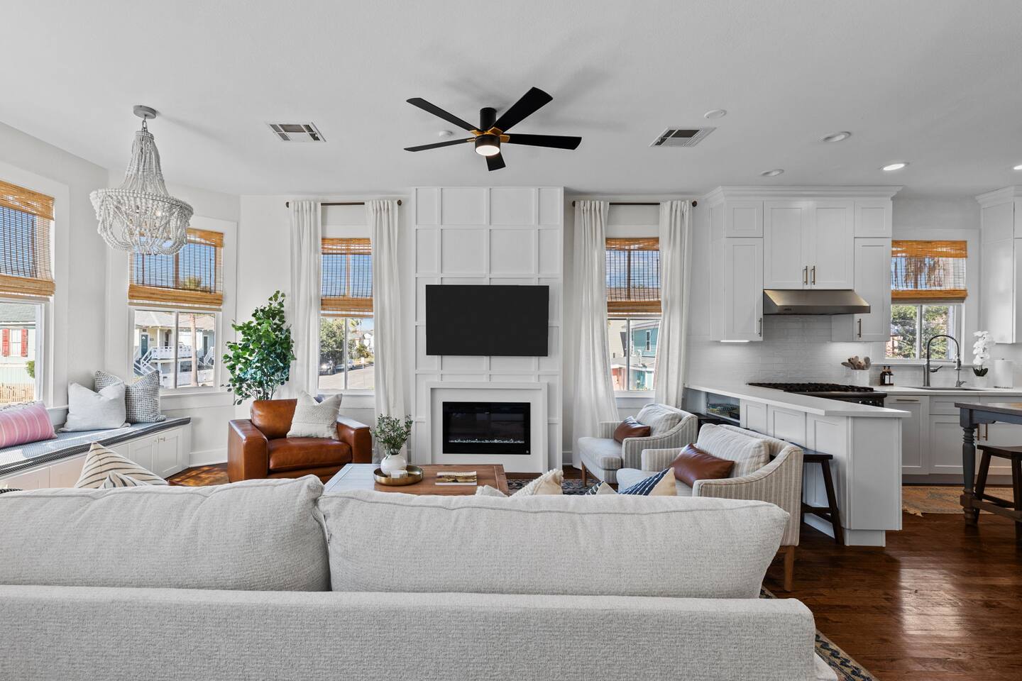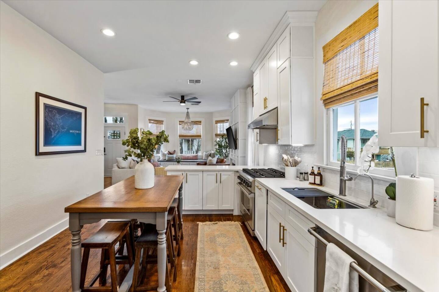 Just 3 blocks from the sand and surf, Gulf Haven Galveston is your private resort-style retreat with a year-round heated pool, outdoor TV lounge, and fully equipped Viking/Bosch chef’s kitchen. Perfect for families, friends, and multi-gen getaways, this home blends modern luxury with laid-back coastal vibes.