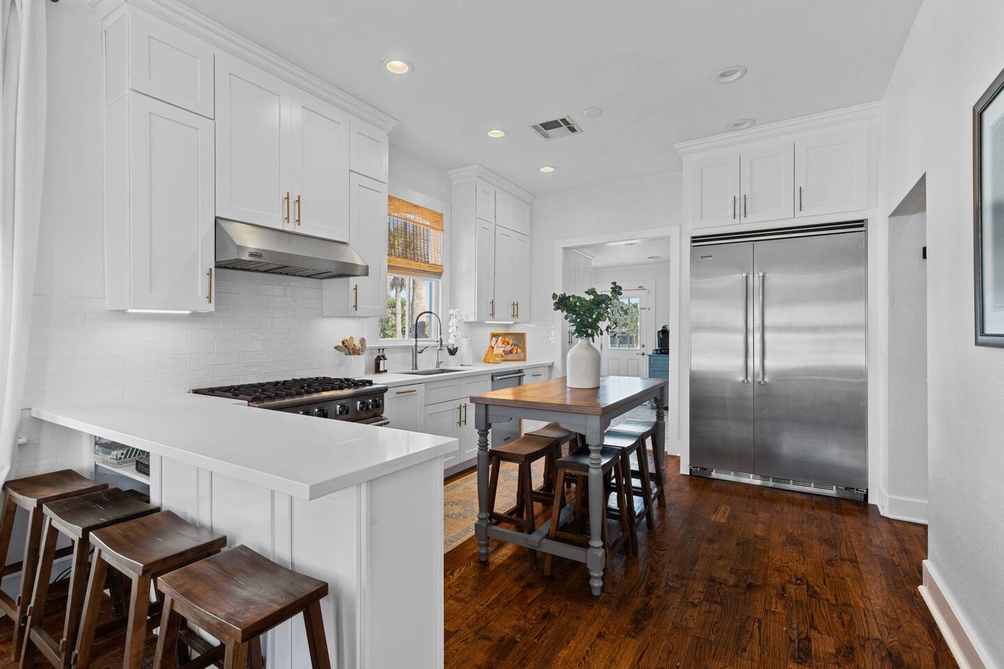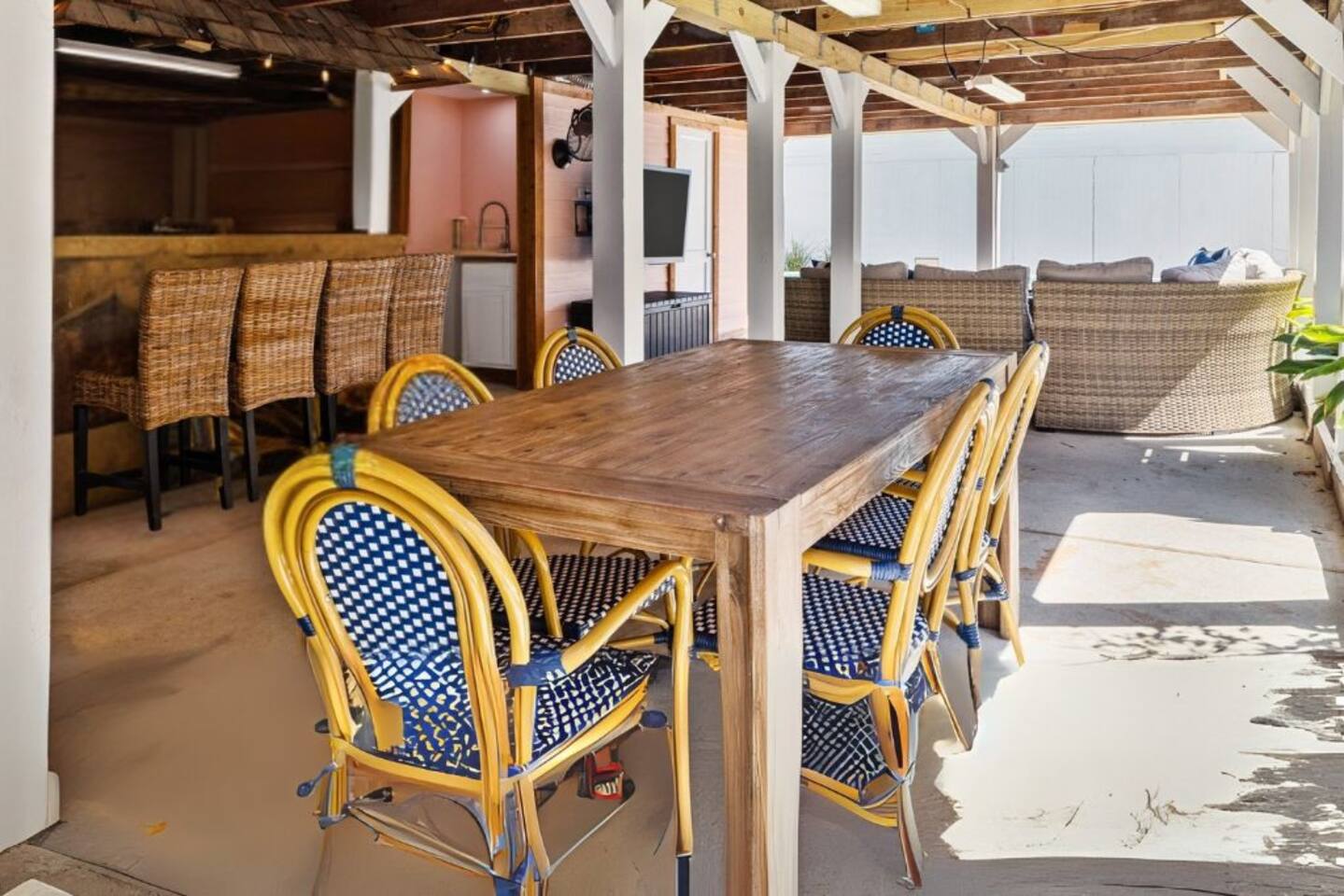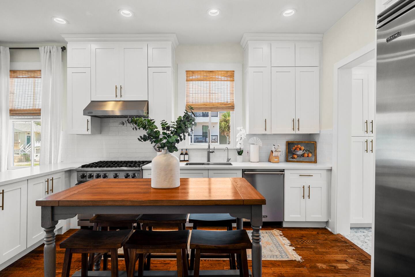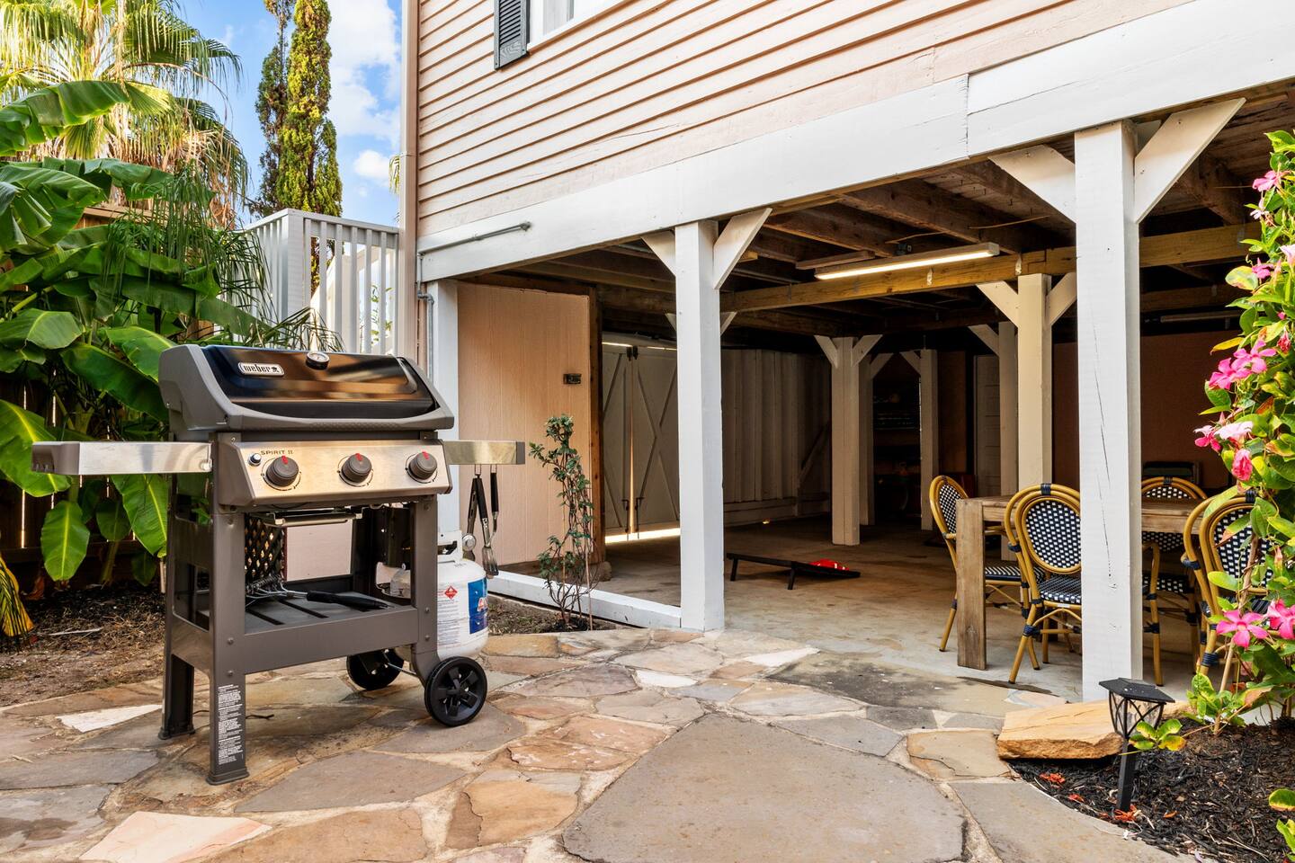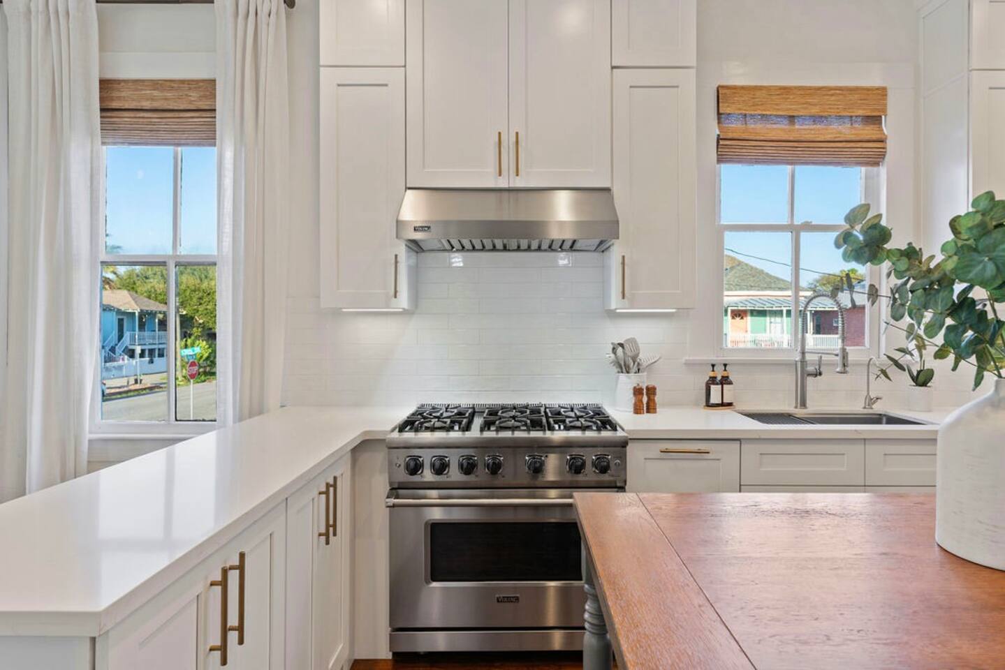 TOP 3 GUEST COMPLIMENTS 1. Resort-style heated pool & outdoor lounge 2. Short walk to the beach with gear provided 3. Responsive, attentive hosting LOCATION HIGHLIGHTS - 3 blocks (6-minute walk) to the beach - Stewart Beach – 0.6 miles - The Strand – 1.2 miles - Cruise Terminal – 3–7 minute drive - Walkable to restaurants OUTDOOR OASIS - Heated pool (free heating year-round) - Outdoor TV (swivels to face pool or lounge) - Weber gas grill + prep counter - Ping pong & yard games - Fire table & shaded lounge - Beach gear: wagon, chairs, umbrellas, toys, towels CHEF'S KITCHEN - Viking gas stove, oven, and fridge - Bosch dishwasher - Ninja cookware, Blendtec blender, Keurig - Stocked with dishes, basic spices, and bakeware SLEEPING ARRANGEMENTS - Master: King bed + en-suite bath - Bedroom 2: King bed - Bedroom 3: Queen + Twin bunks - Pack ’n Play + foldable mattresses available - Pottery Barn & Quince bedding ENTERTAINMENT & LOUNGING - Roku TVs in living room, 2 bedrooms, outdoor lounge - La-Z-Boy sofa and upscale furnishings - Board games, ping pong, yard games - Fast WiFi FAMILY FRIENDLY - High chair, children’s dinnerware - Pack ’n Play with crib sheets - Room-darkening shades - Pool safety locks & gate Need additional space? You can also book the 1-bedroom / 1-bath guest house next door. Inquire for more details!