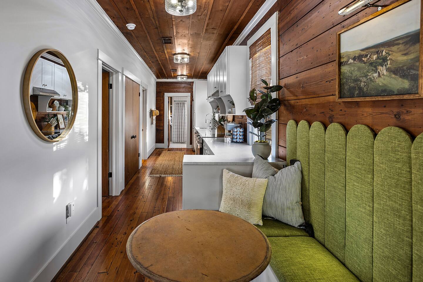 CLOSE TO BEACHES Whether you walk or drive, you'll be super close to Galveston's beaches. Just a 10-minute walk or 2-minute drive to the Seawall. CENTRAL LOCATION This home is located in midtown Galveston, close to loads of restaurants, shops, beaches, and period architecture. It's in an eclectic neighborhood with a mix of restored homes as well as older homes in need of restoration. HISTORIC CHARM People love Galveston's historic homes, and this one has been renovated to bring back its original character. You'll love the shiplap walls and ceilings, original hardwood floors and windows — all mixed with curated design elements. BEDROOMS Two bedrooms full of character and cozy bedding that will make you want to stay snuggled in bed. —Bedroom 1: Primary bedroom with queen bed and ensuite bathroom —Bedroom 2: Queen bed (with Pack n Play in closet) —Living Room: Queen sofa bed with memory foam mattress TVs Enjoy three Roku Smart TVs in the living room and both bedrooms. Log in to your favorite streaming services and be automatically logged out when you leave. GOLF CART RENTAL Beachin' Rides offers an exclusive discount for guests who stay at this property! (Discount is not available during holiday weeks or during other local special events.) Contact us for details.